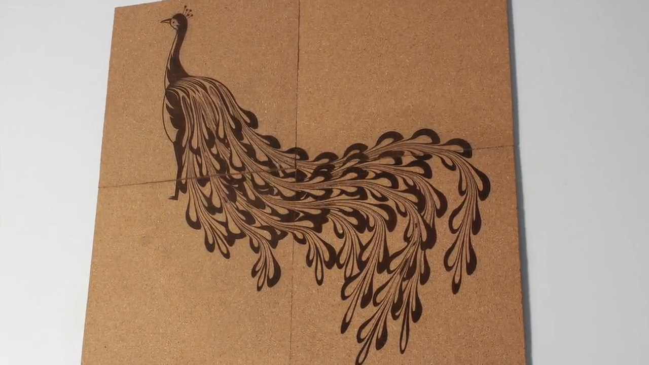 Abstract Peacock Engraved Cork Wall Hanging Mural